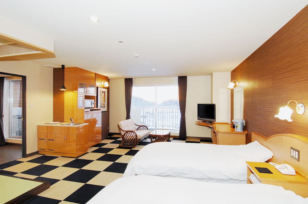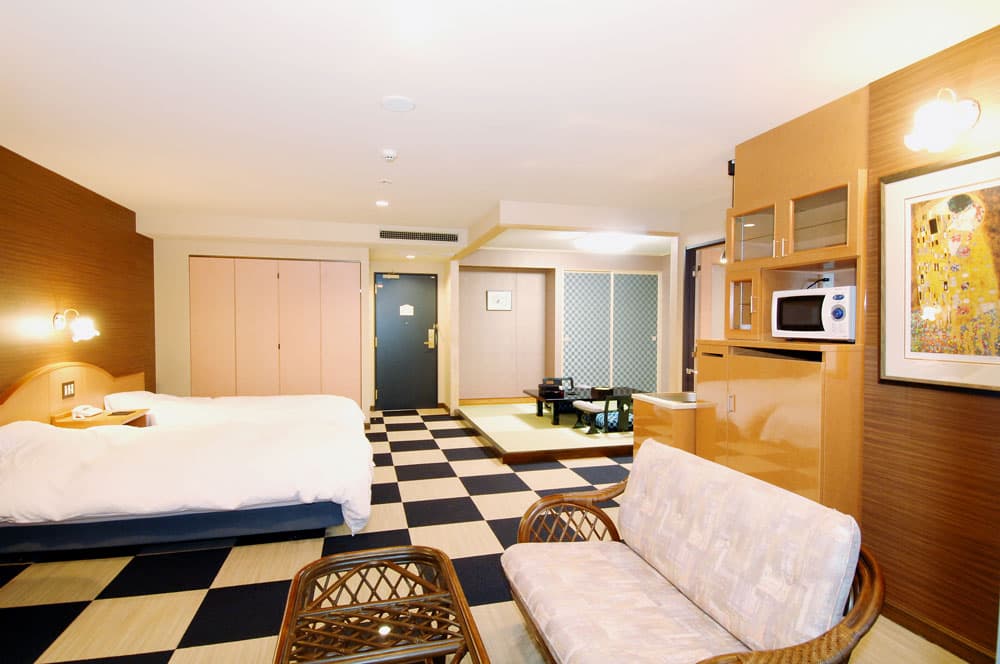| 客室設備 | 液晶テレビ / 電話 / 湯沸かしポット / お茶セット / 冷蔵庫 / ドライヤー / インターネット接続(全室無線LAN完備)/ ヘルスメーター / 洗浄機付トイレ / 個別空調 / ベビーベッド / 電気スタンド(一部) / アイロン(貸出し) 【特別室のみ】 ミニキッチン / 電子レンジ / 洗濯機(洗剤はフロントにて販売) |